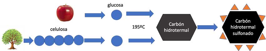 - Transformación del carbón hidrotermal en carbón sulfonado.