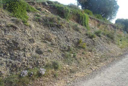 En total se han muestreado 350 puntos diferentes a lo largo de unos 5 km de sedimentos (Fig. 4) cercanos a las localidades de Luesia y Fuencalderas (Zaragoza) y 177 puntos a lo largo de 836 m en la zona de San Marzal de Longás (Sierra de Santo Domingo, Zaragoza). Con esas secciones, se logra completar el estudio de esa zona desde el punto de vista magnetoestratigráfico. Los últimos 1.000 metros de la serie se han interpretado como relacionados con un abanico aluvial, mientras que los previos 4.000 metros se relacionan con depósitos fluviales (Arenas et al., 2001). A lo largo de la serie, y de manera lateral, se han estudiado cambios en la sedimentación relacionados con estructuras tectónicas (fallas, cabalgamientos), que se desarrollan a la vez que se depositan estos materiales: son depósitos sintectónicos. La datación de los materiales permite a su vez datar las estructuras asociadas a ellos.