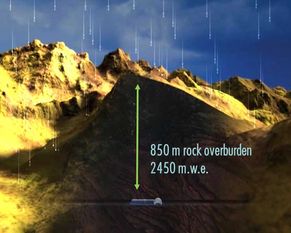 Desde mitad de los años 80 del siglo pasado, en laboratorios acondicionados en el túnel del Somport (cerca de la localidad oscense de Canfranc), investigadores de la Universidad de Zaragoza han desarrollado experimentos muy especiales que requieren muy bajos niveles de radiactividad. La montaña hace de paraguas que protege de la radiación cósmica que nos baña de forma continua en la superficie terrestre (Fig. 3).